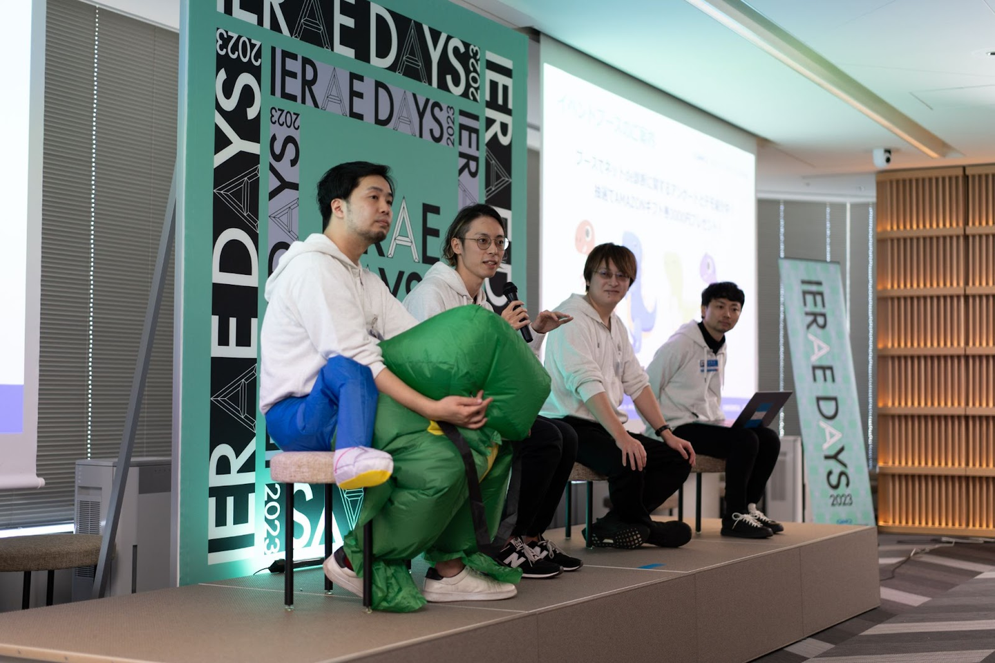 ブースのご紹介ではございませんが、IERAE DAYSではロゴのデザインにもかなりこだわりをもって取り組んでまいりました。カンファレンスのLPや当日の会場のみならず、来場者へのノベルティやイベント時着用のパーカーなど、様々なシーンで活用されたIERAE DAYSのロゴ。そこで、デザインを担当してくださった大倉さんにお話しを伺いました。