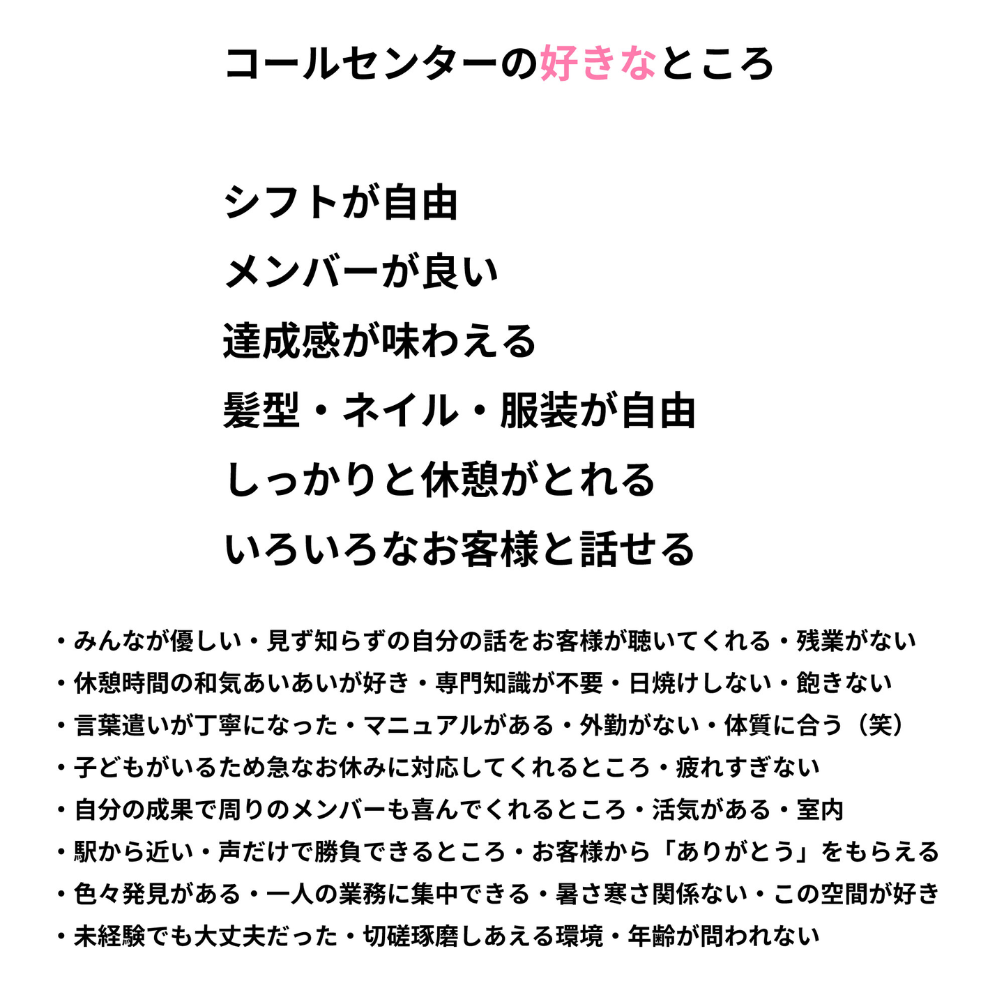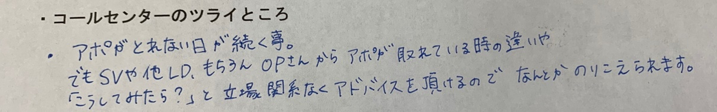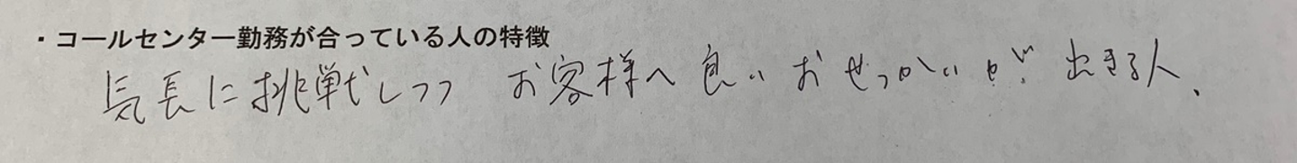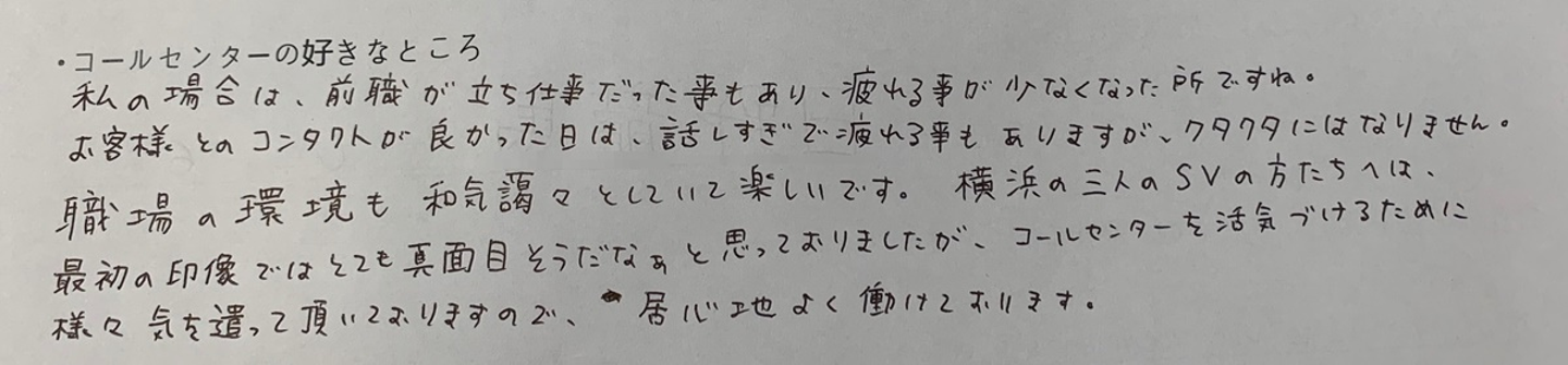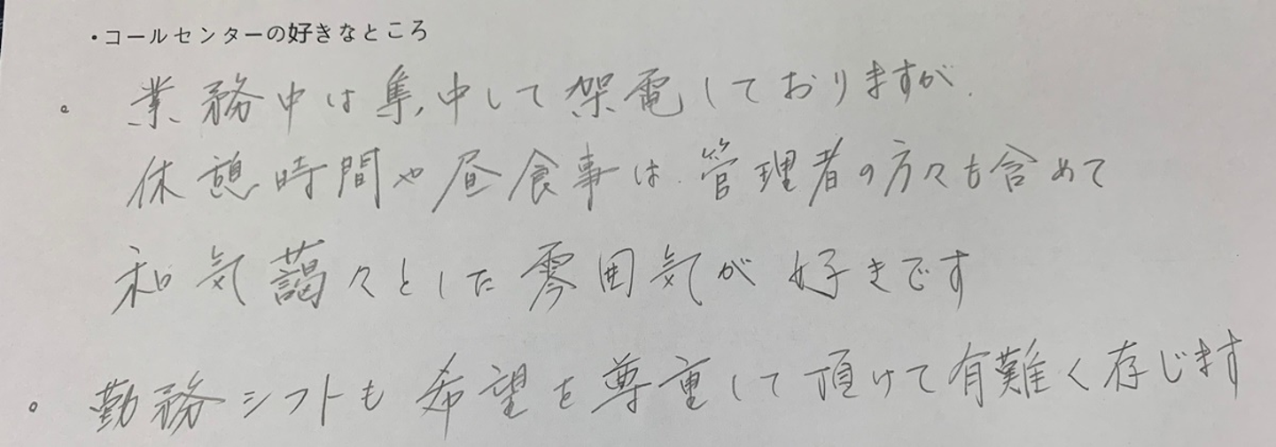 コールセンターの好きなところ、ご覧いただきイメージ通りでしたか?何かのきっかけにかれば嬉しいです。