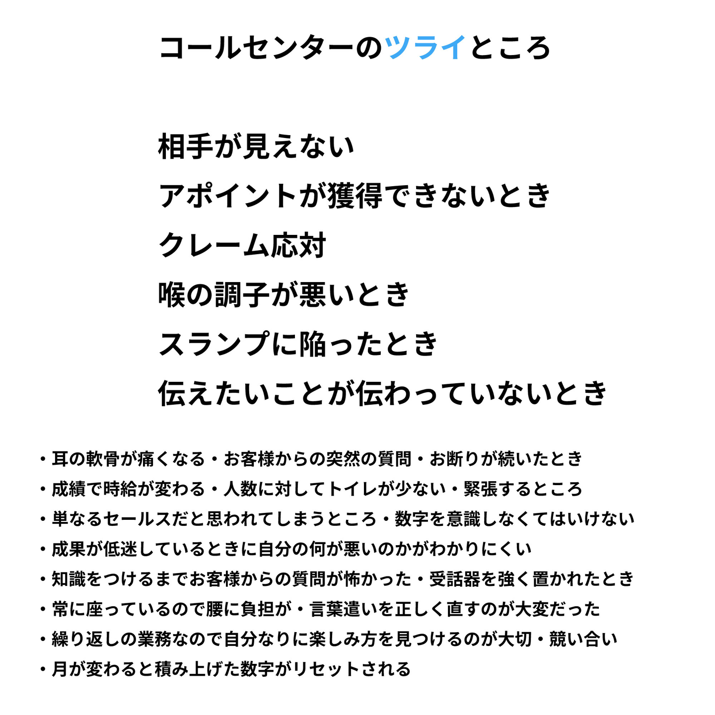 ・コールセンターのツライところを教えてください
