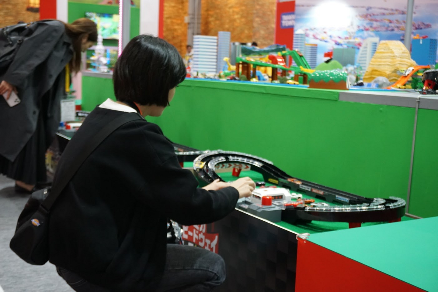 小倉さん、レポートありがとうございました!あまり車に詳しくない、という小倉さんもとても楽しそうに取材体験を行っていました。こちらはトミカブースでトミカと戯れる小倉さんの図。