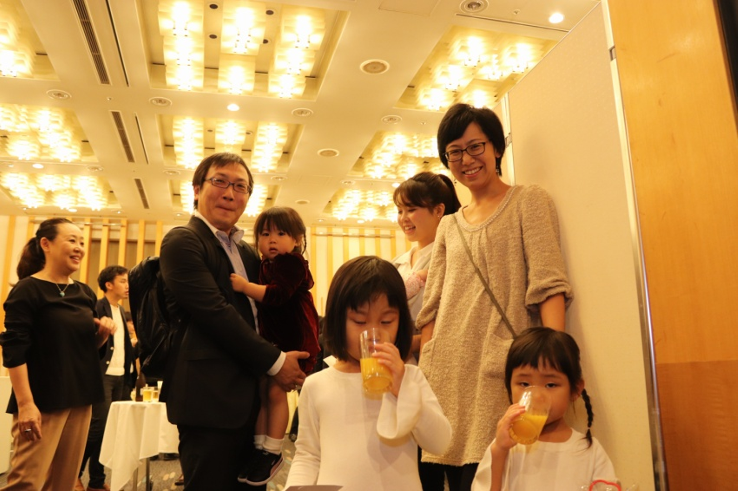女性の育休産休取得・復帰率100%の当社。大沼も半年後をめどに復帰をするみたいです。他にも家族連れで忘年会に参加してくれる社員もたくさん。社員だけではなく、社員の家族にも会社のことを知ってもらえる場にもなっています。