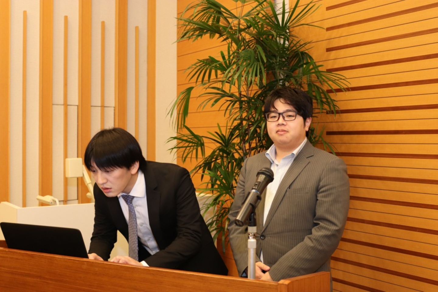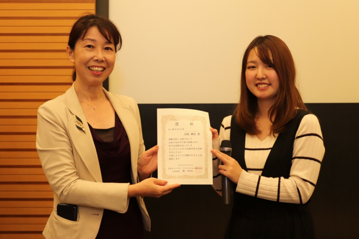 全社MVPは2014年入社の吉岡でした!!社長の関から賞状が寄与されます。