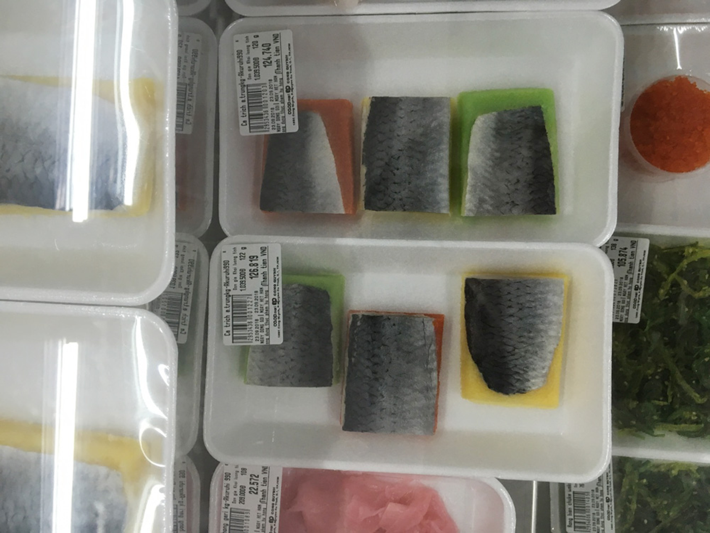 安さで推してきたベトナムでも、この鮮魚を使っているお寿司、お値段は120,000VND(600円ほど)。