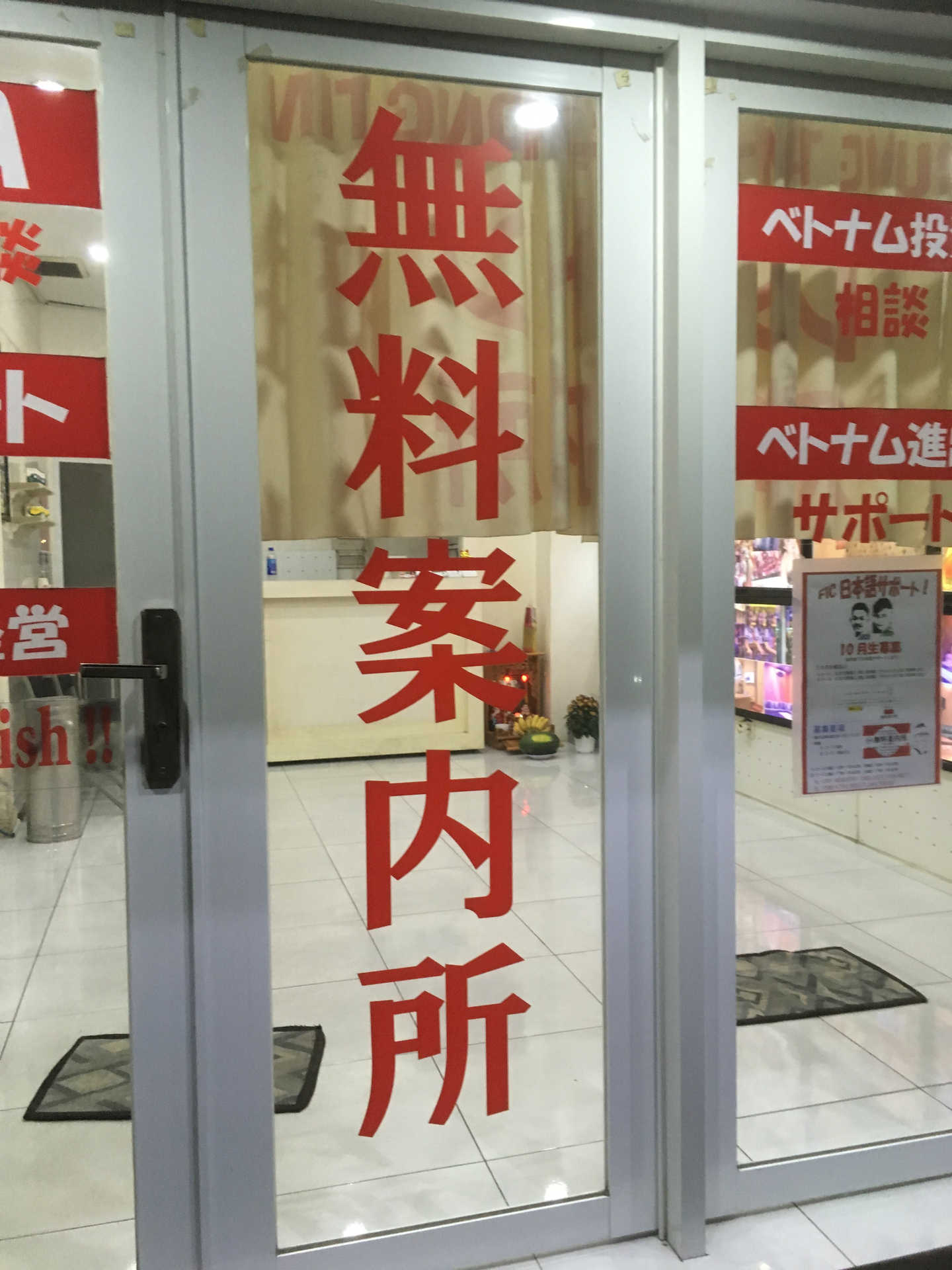 日本人街に行くと、このような日本人向けの無料案内所があったりします。投資とか、進出とか。。ビジネス寄りの話も受けてくれるようです。