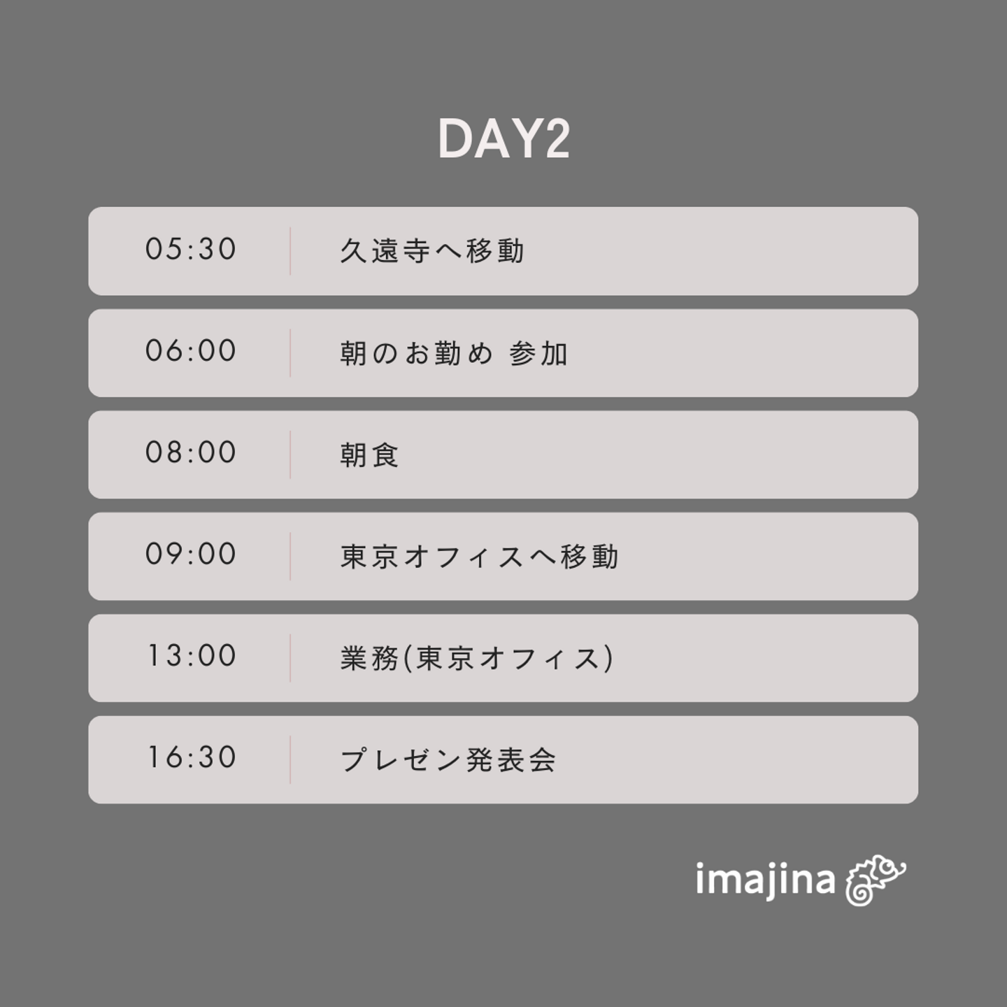 オフィスに到着すると、社内のプレゼン発表会に参加しました。社員の皆さんが自社の売上向上に向けた施策を提案する中、内定者はSNS運用について以前から準備してきた発表を行いました。会の中では、それぞれの提案に対して代表から「それすぐやろう」という言葉が何度も出ていました。自分が提案した内容をすぐに実践できる、イマジナのスピード感を改めて実感した会でした。