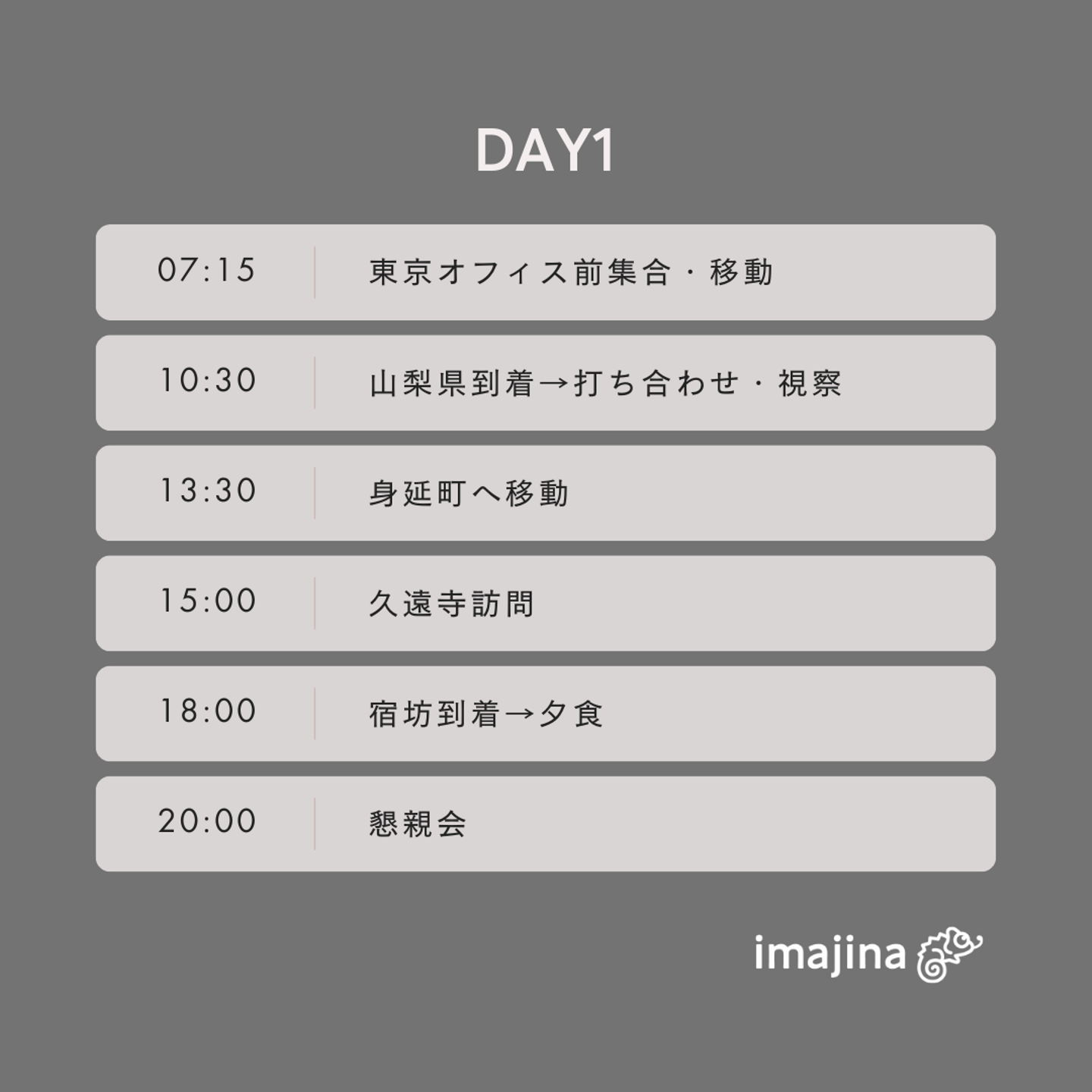 今回は10月1日〜2日にかけて山梨県の身延町で行われた、イマジナの内定者合宿の様子をお届けします!