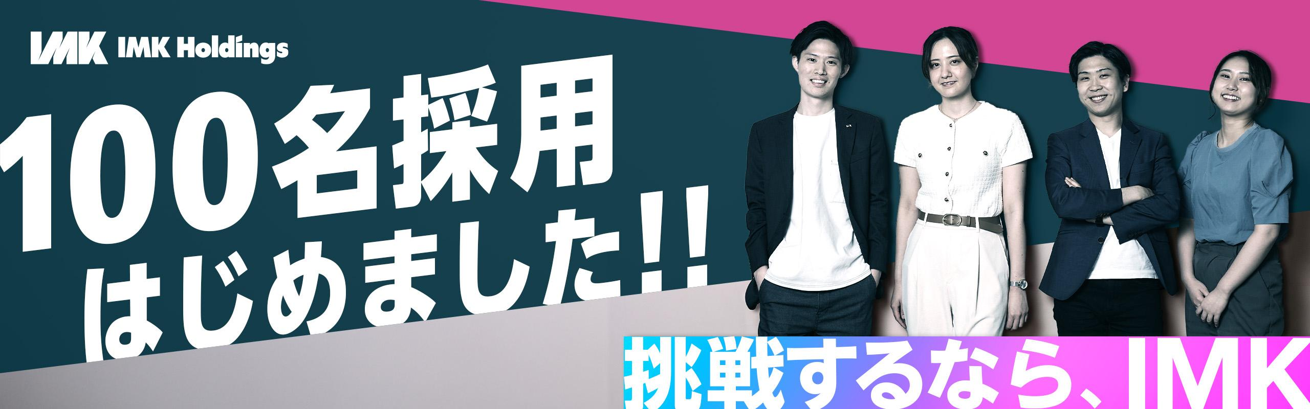 インターネットマーケティングを軸足に、 【エンタメ・美容・健康・ゲーム・ 出版・デジタルマーケ】などの多数事業を 創出してきたIMKホールディングス。 【インターネットマーケティング】を武器に 斜陽産業や多くの課題を抱える業界に参入し、 新たな価値を生み出すことで世界をUPDATEする。 そんなVISIONのもと、日々様々な事業拡大に挑んでいます。 2025年、事業拡大に伴い 『100名採用』を掲げ、未経験から経験者まで 幅広く新メンバーを募集します。