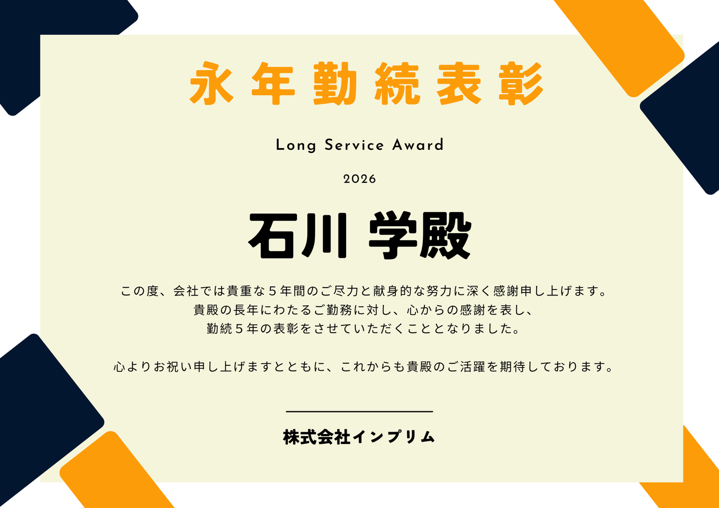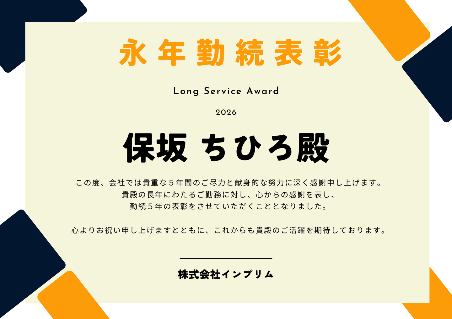 今回は、そんな節目を感じる出来事のひとつ、インプリムの「創立記念品」と「永年勤続表彰」についてご紹介します。