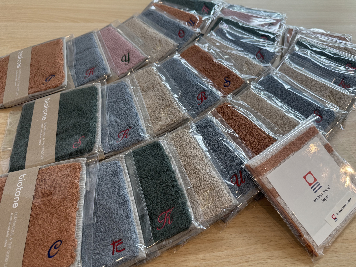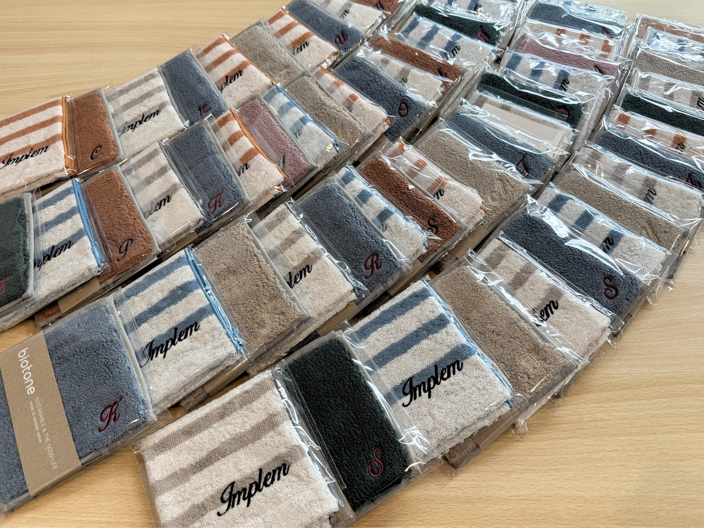 インプリムのロゴ刺繍と、社員のイニシャル刺繍が入った特別仕様です。