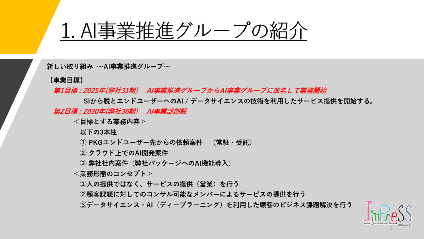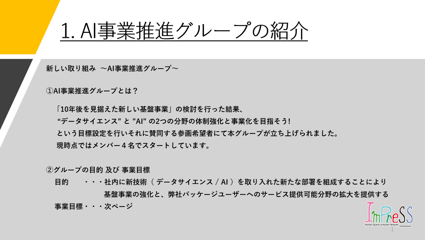 まずは、AI事業推進グループの紹介から!!