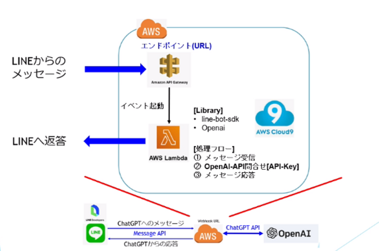 *1 「【AWS】ローコードで学ぶ、誰でも出来るChatGPTのLINEアプリ開発 -基礎編-」Takky.Nさん