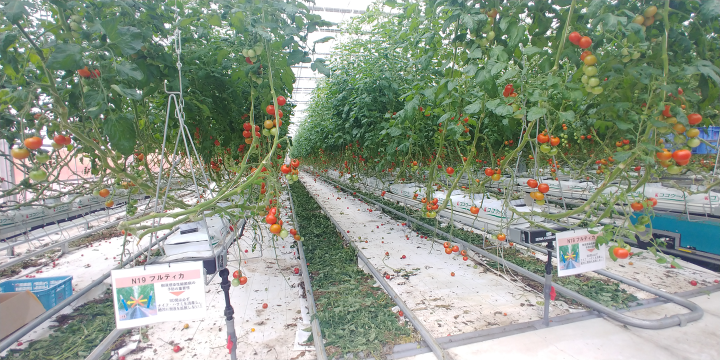 園内に入ると、大玉トマト・ミディトマト・ミニトマト・房取りトマトといった多数のトマト達が迎えてくれました。