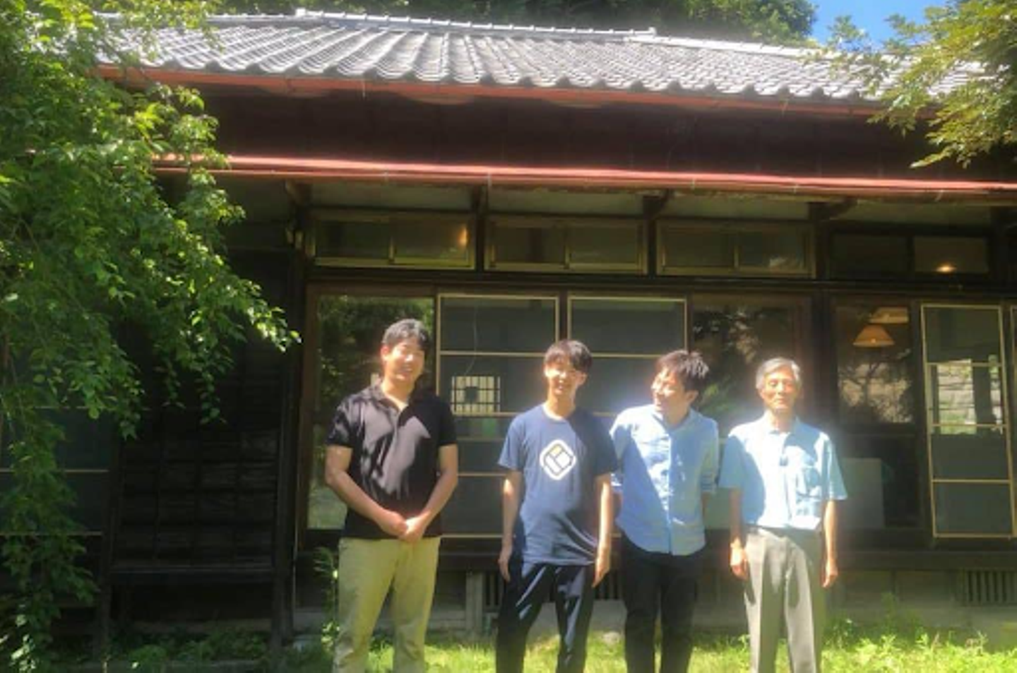 【Blog】築100年の庭付き古民家オフィス開設&仲間が増えました でご紹介した通り、初めて構えたオフィスは築100年の古民家で、当時は共同代表の菱木と大山を含めて4名。上の画像は入居した当時の記念写真です。広い敷地を活かして庭にある畑で収穫実験ができるのに加え、海も山も近く、執務スペースからウグイスやホトトギスの鳴き声が聞こえるほど自然豊かな環境でした。