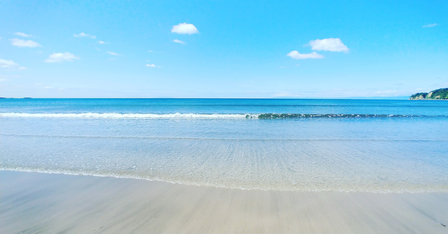 歩いて5分でのぞめる、穏やかな材木座ビーチ。