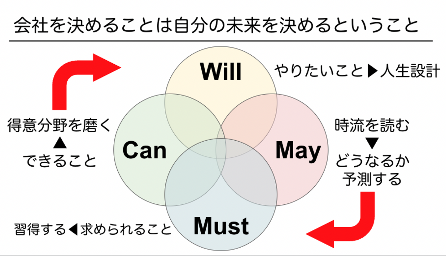 まず初めに、キャリアデザインについて考えるワークをしました。そして、あるべき「就活の軸」とは自身の幸せな人生を決めてから決めるべきだと教えていただきました。