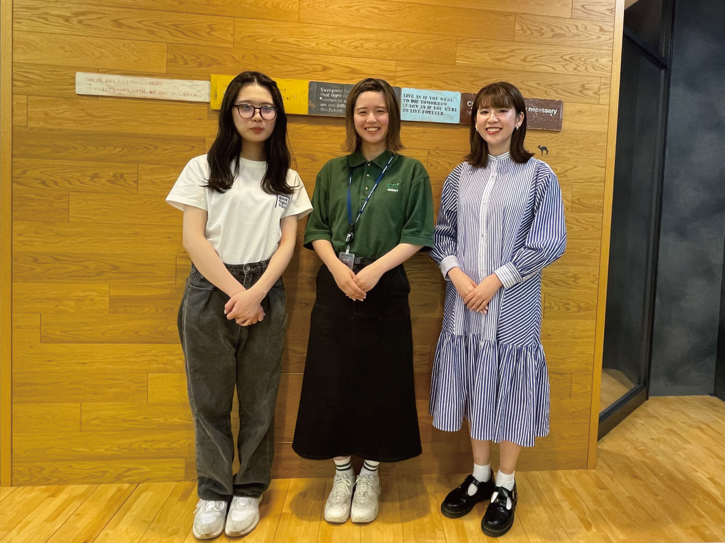 一緒にお話をうかがったのは、インフォバーン2023年度新入社員から、岡本未来さん、佐々木七海さん、冨川詩音さんの3名(イベント当時は内定者)。就活生に対するアドバイスには、数カ月前まで就活を行ってきた当事者ならではのリアリティがありました。