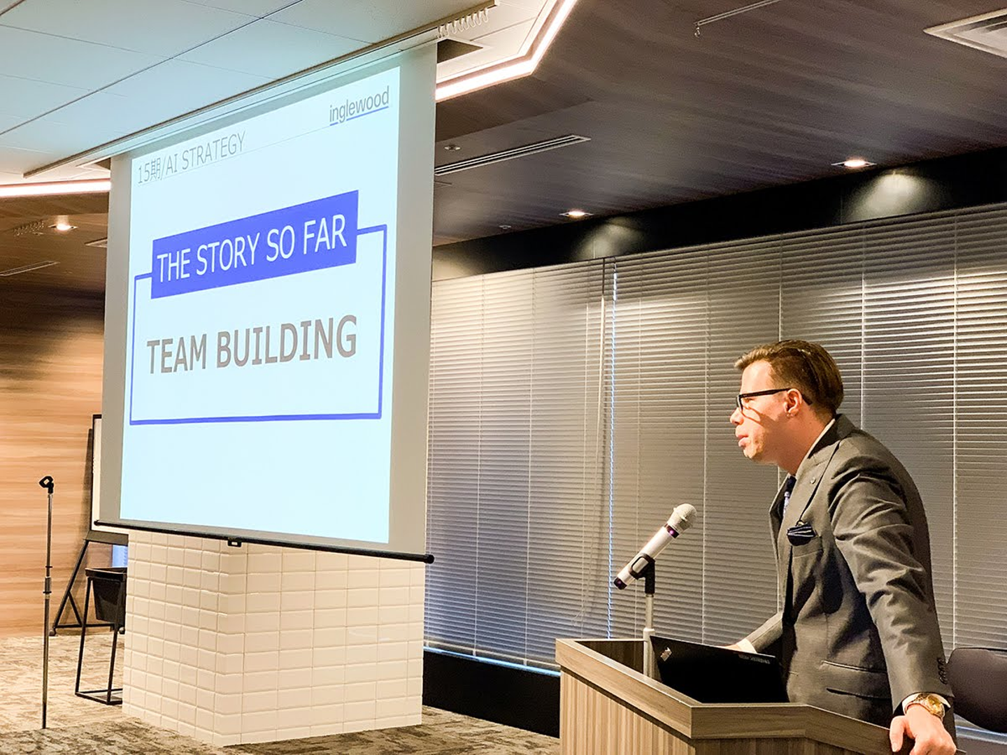 AI戦略事業本部の発表は、ゼネラルマネージャーでありデータサイエンティストのゾルタンから。スローガンは「JUST DO IT」。