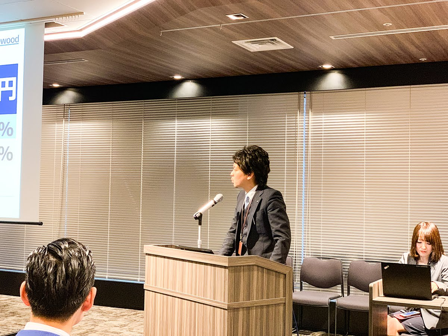 次は、会社の根幹を支えるコーポレート統括本部のゼネラルマネージャーである黒川から、部署の来期目標や未来へのビジョンが伝えられた。