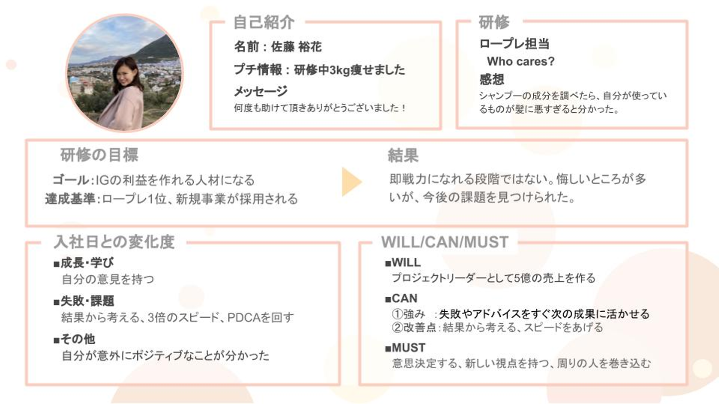 ただ、研修のゴールとしてではなくなりますが、近々新規事業の提案が行えるよう、自分のペースで進めていきたいと思っています。」