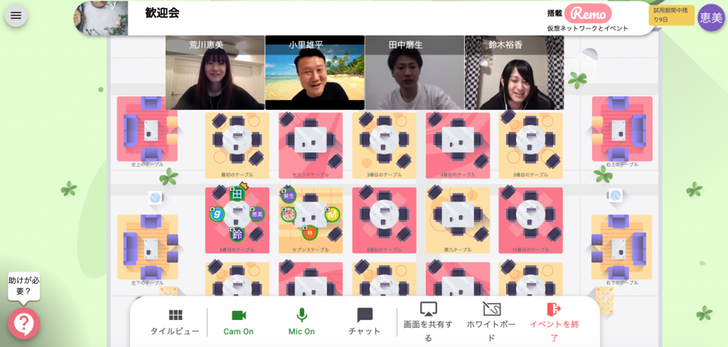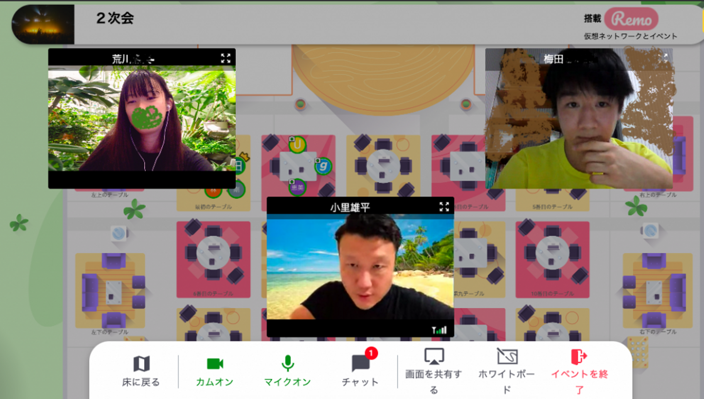 ということで、今回は、remo (https://remo.co/) と、みなさんおなじみのzoomを使用しました。