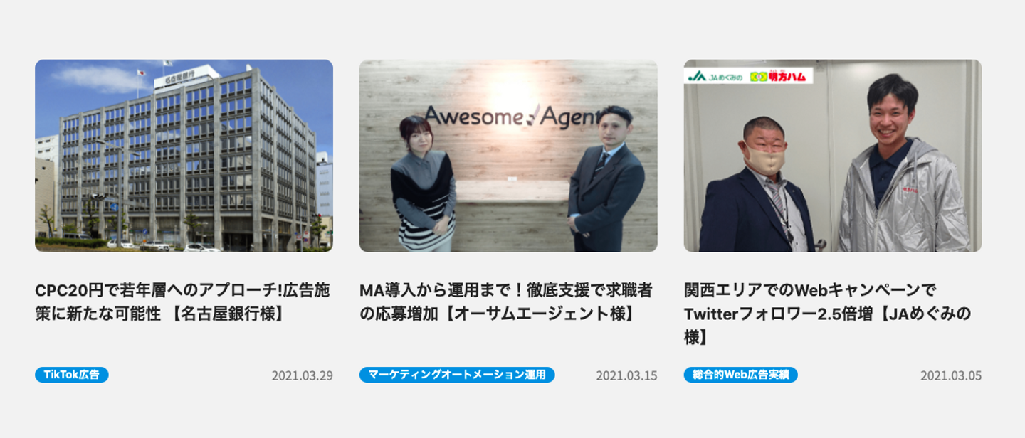 以前のHPにも実績紹介はありましたが、簡易的なものでした。そこで今回からはクライアント様にインタビューを行い、課題解決とその方法についてよりイメージが湧きやすいようなクライアントインタビュー記事になりました!