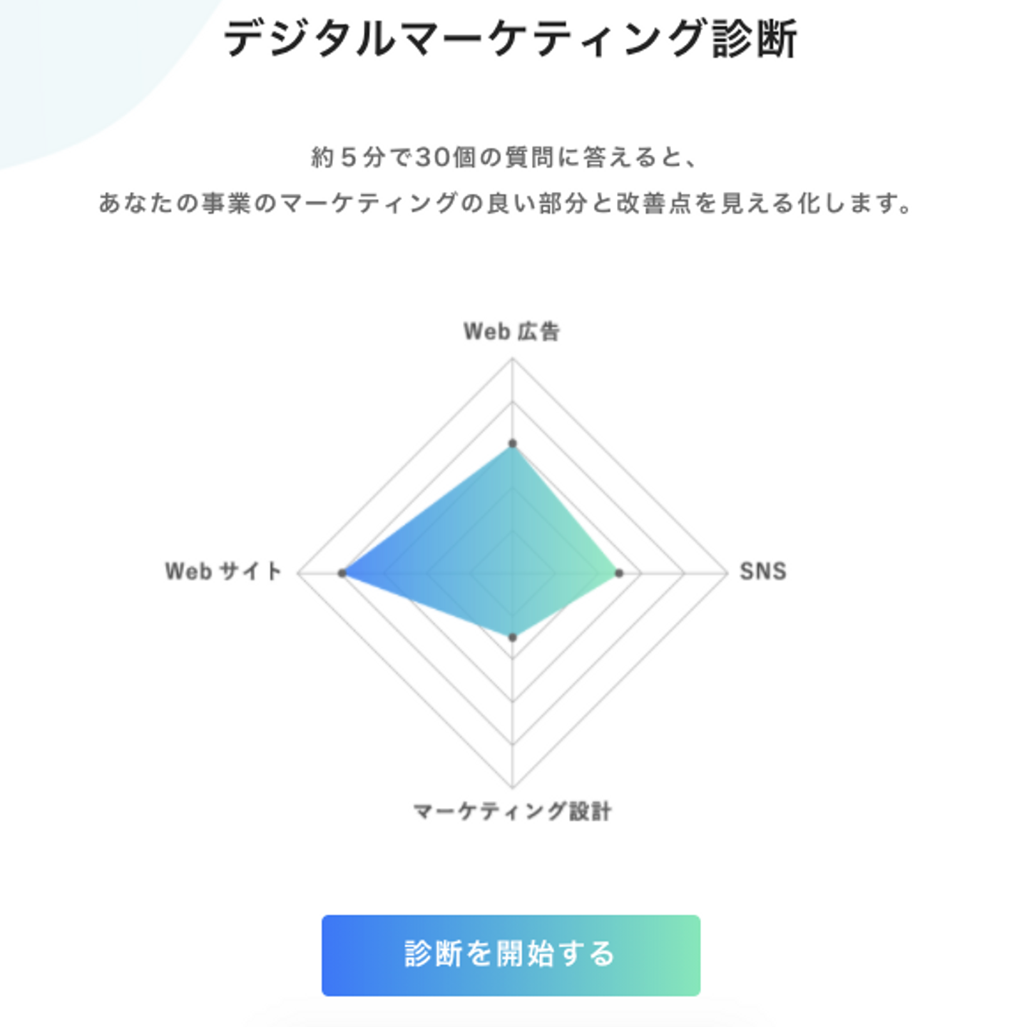 5分でマーケティング課題がわかる、無料のマーケティング診断もスタートしています!