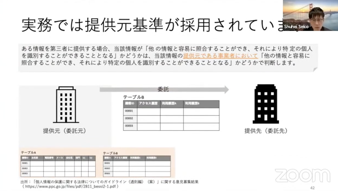 「個人情報の定義」ー 誤解の多い箇所にもかかわらず、法務から事業・技術に対する説明を徹底できていない現状があると世古は指摘します。法務が個人情報の定義を間違って理解していたり、仮に正しく理解していたとしても、その前提知識がない事業・技術側と対話を徹底せず、彼らが持つ誤解を放置してしまっていたりすることがあるのではないでしょうか。