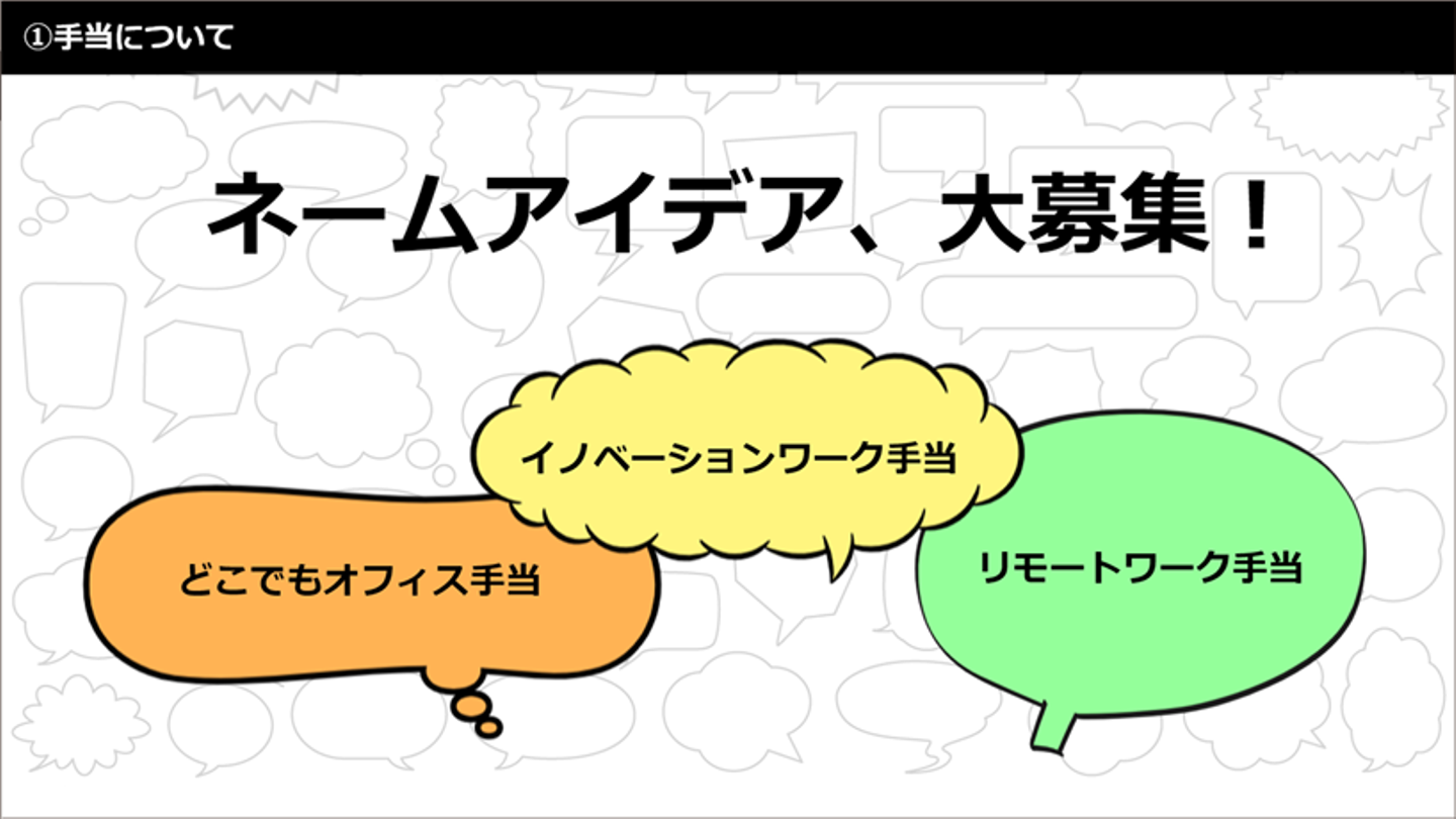 メンバー自らが様々な「働く」に挑戦し、わくわく働くことを支援する手当として、この度追加することとなりました。