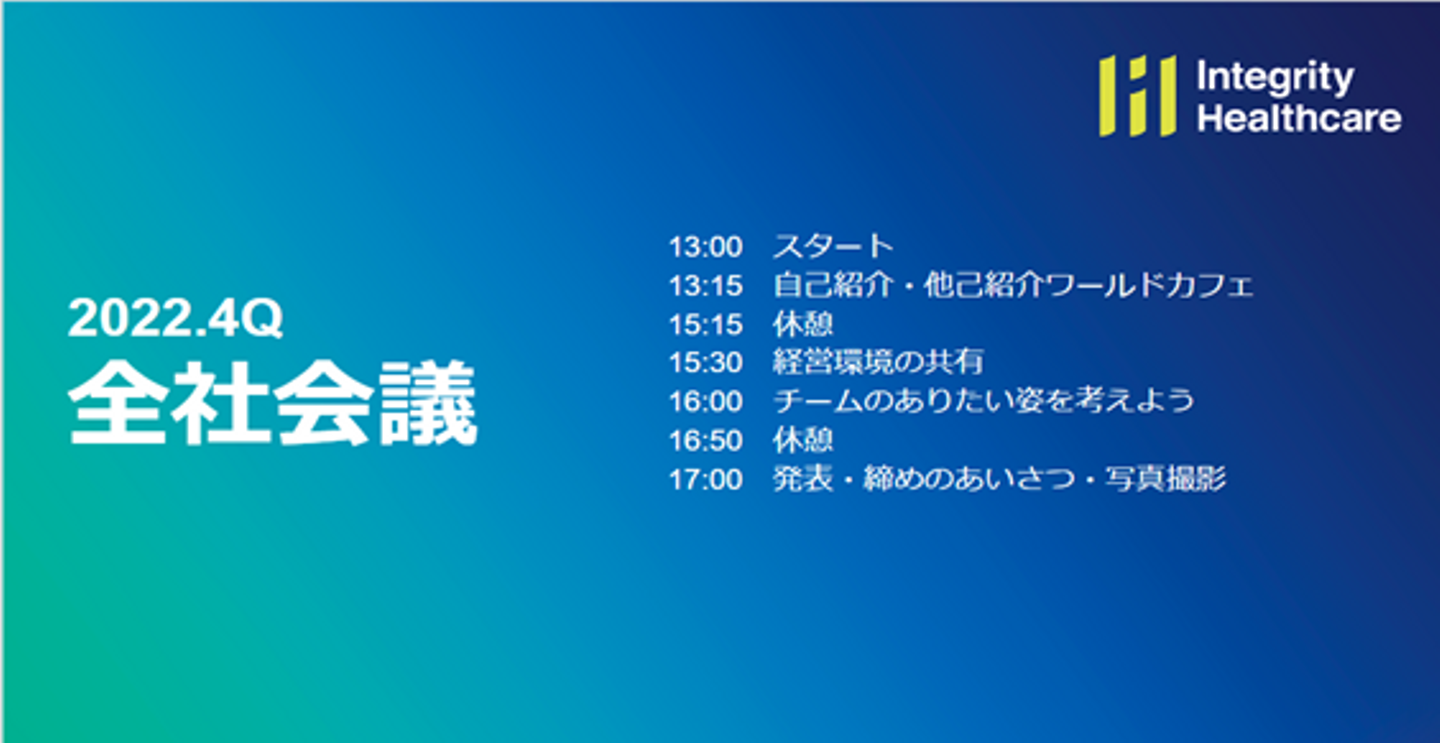 IHは、このような形で、ビジョンや事業状況の共有を3カ月に1度確認する場を作っています。(通常はオンラインで開催しています。)