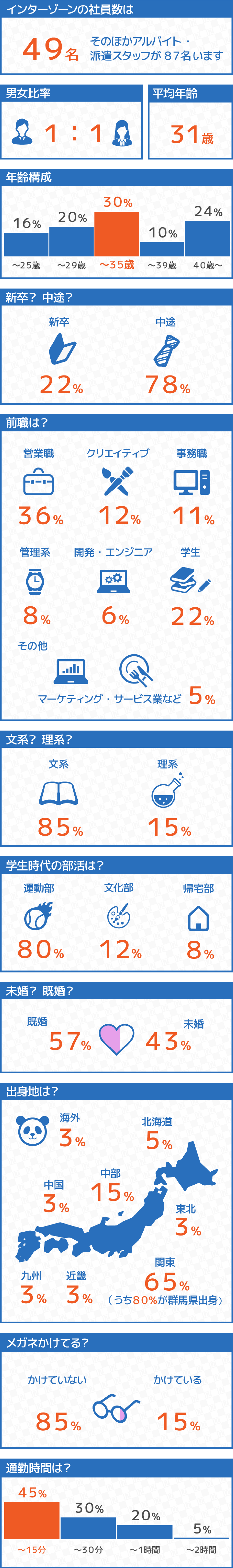 前回は会社のことを数字で見てみましたが、今回は社員編!さまざまなタイプの人が集まるインターゾーンで働く人についてお伝えします!