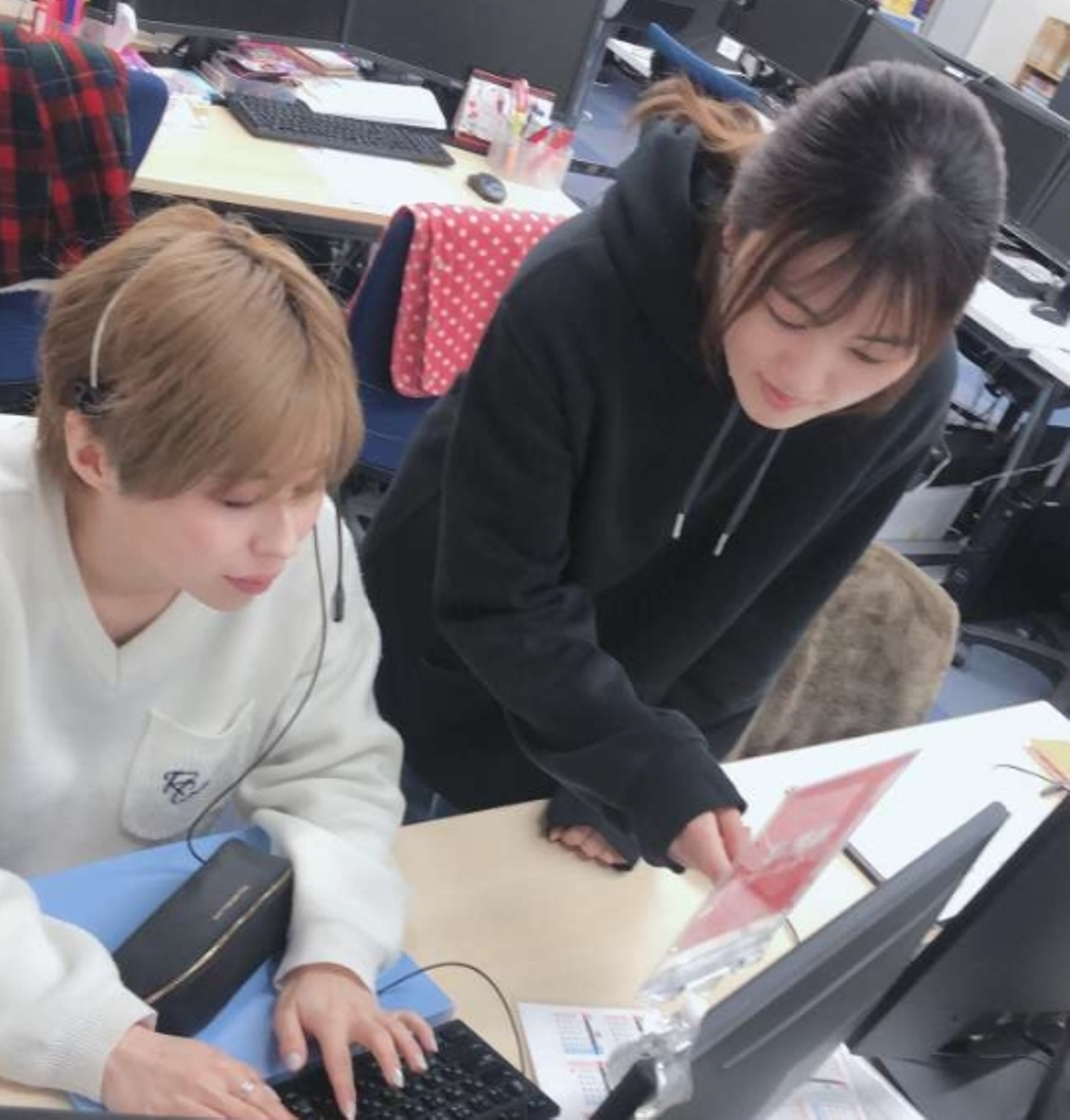 正社員になってからは、サポーターや教育者のスタッフをとりまとめる業務を担当し、それぞれの時間の管理や研修内容、習得状況の把握などを行っています。特に力を入れているのは、「入社3カ月以内」のコールスタッフへの指導です。教育チームと連携をとりながら研修内容を決定し、教育チームとコールスタッフをつなぐような仕事をしています。
