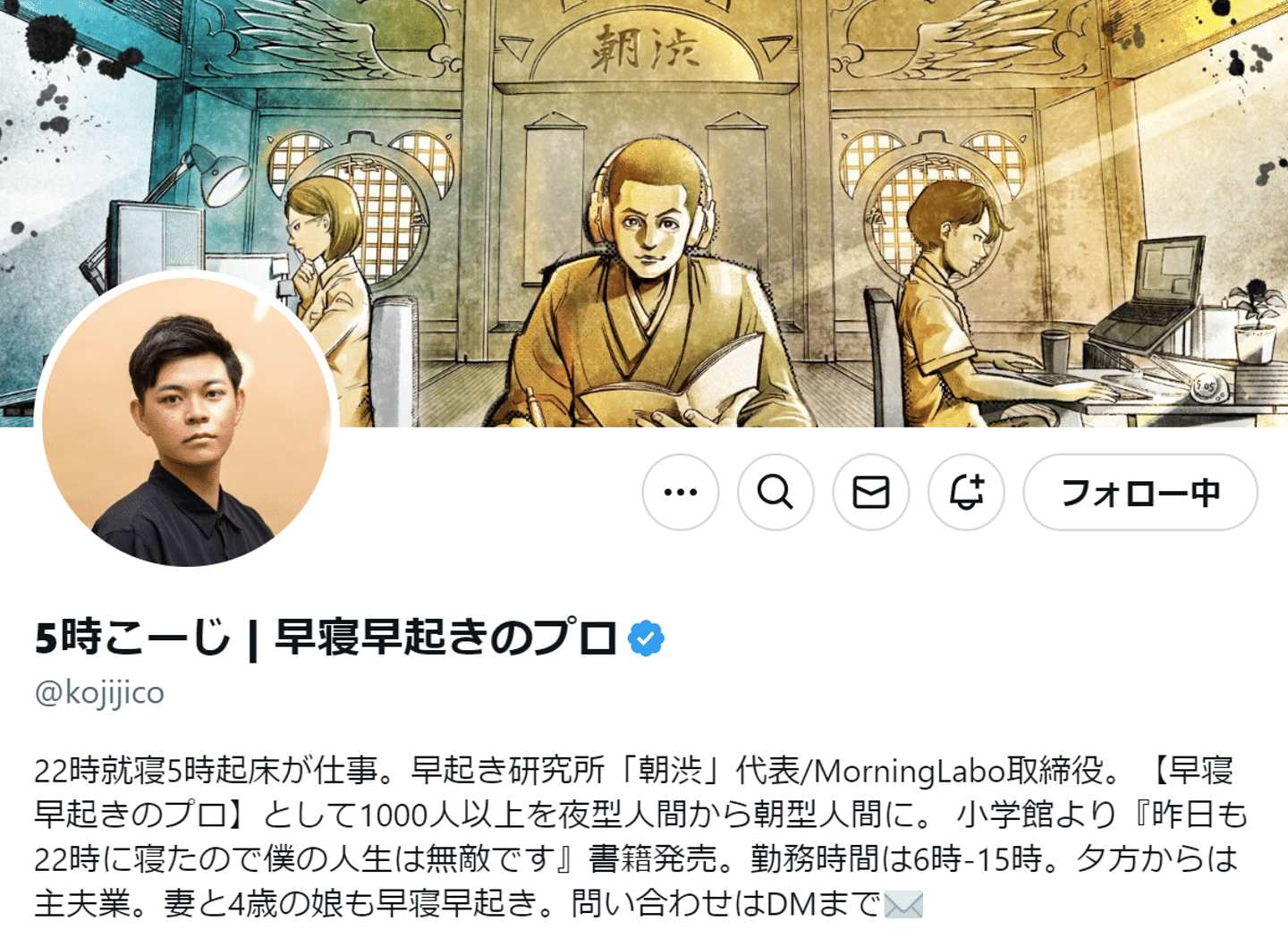 2017年に誕生した、早起きを楽しみながら自己成長や交流を目指す朝活コミュニティです。代表は、井上皓史さん(通称・5時こーじ)。
