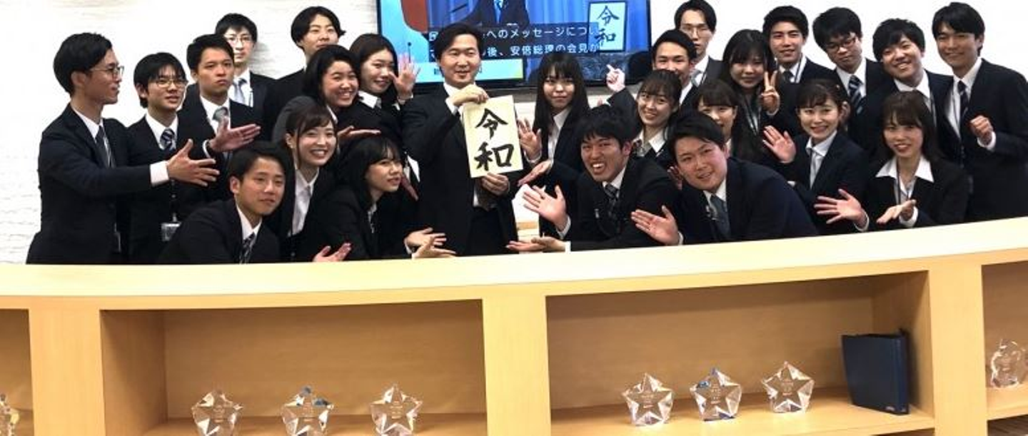 入社式のあと、ちょうど元号発表のタイミングだったこともあり、当社の代表と一緒に新しい元号である「令和」を持って記念撮影をしました!