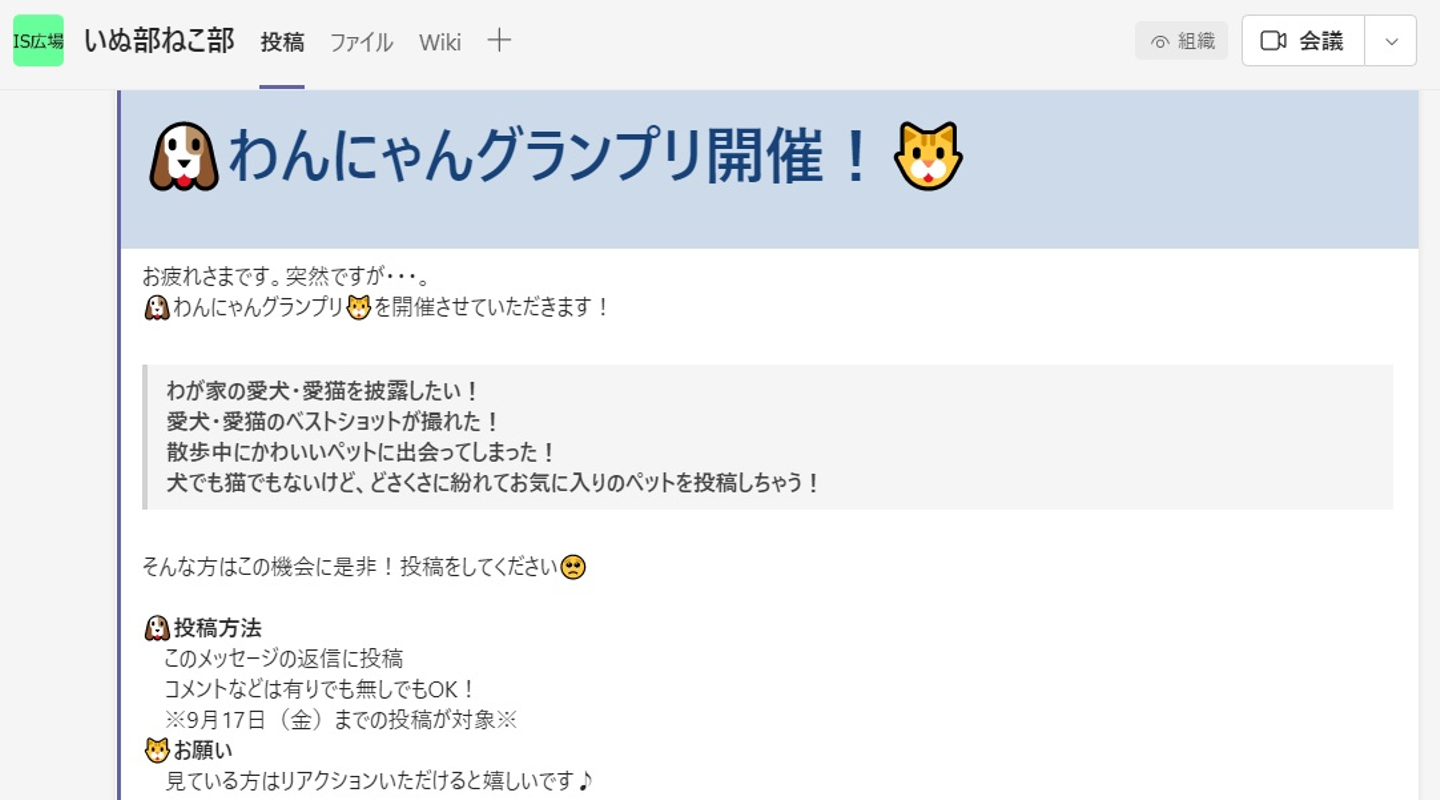 【オンラインコミュニケーション施策】テレワークでも気軽に交流ができるコミュニケーション「IS広場」わんにゃんグランプリを開催しました♪