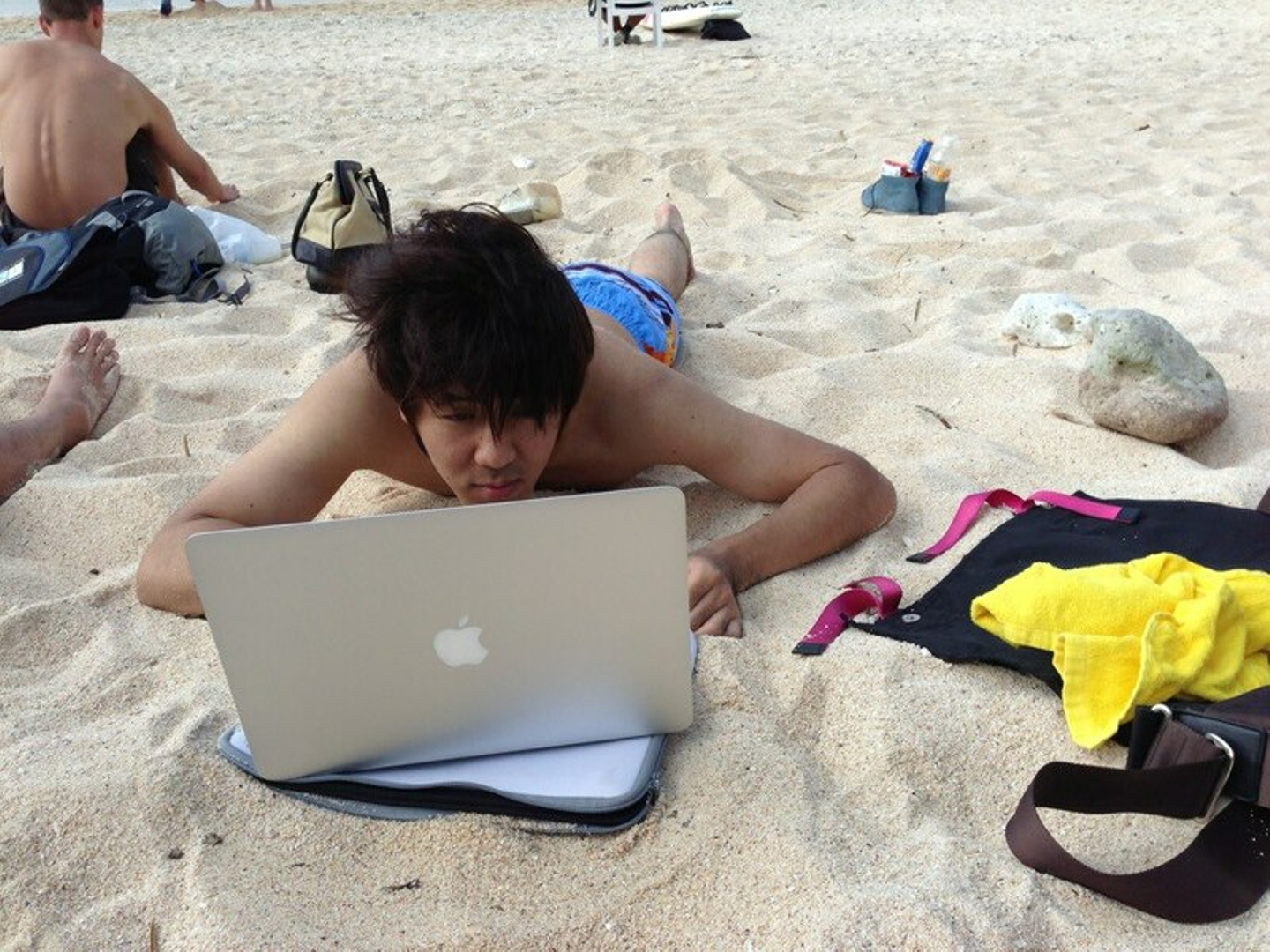▲新卒時代は仕事が楽しくて砂浜でも仕事をしていました