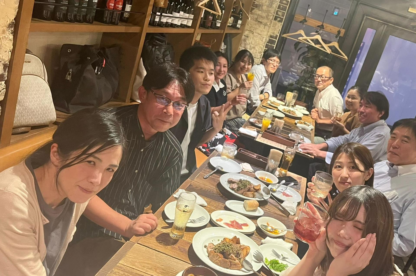 当日は、会社からほど近い人形町の肉系居酒屋に集合、おいしいお肉をほおばりながら、楽しい雰囲気ではじまりました。
