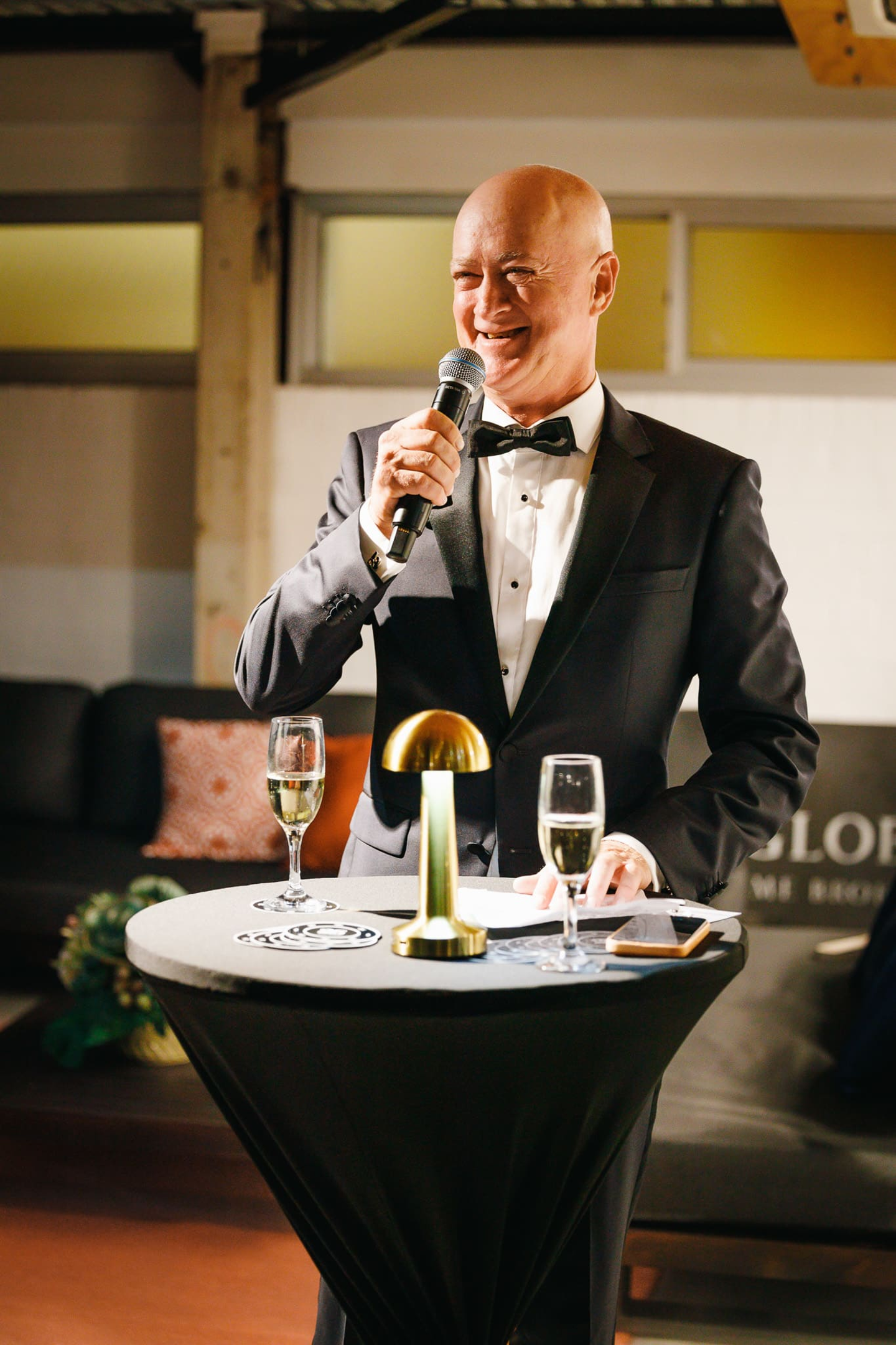 26 DegreesのCEO ギャビン・ホワイト氏によるスピーチの様子。