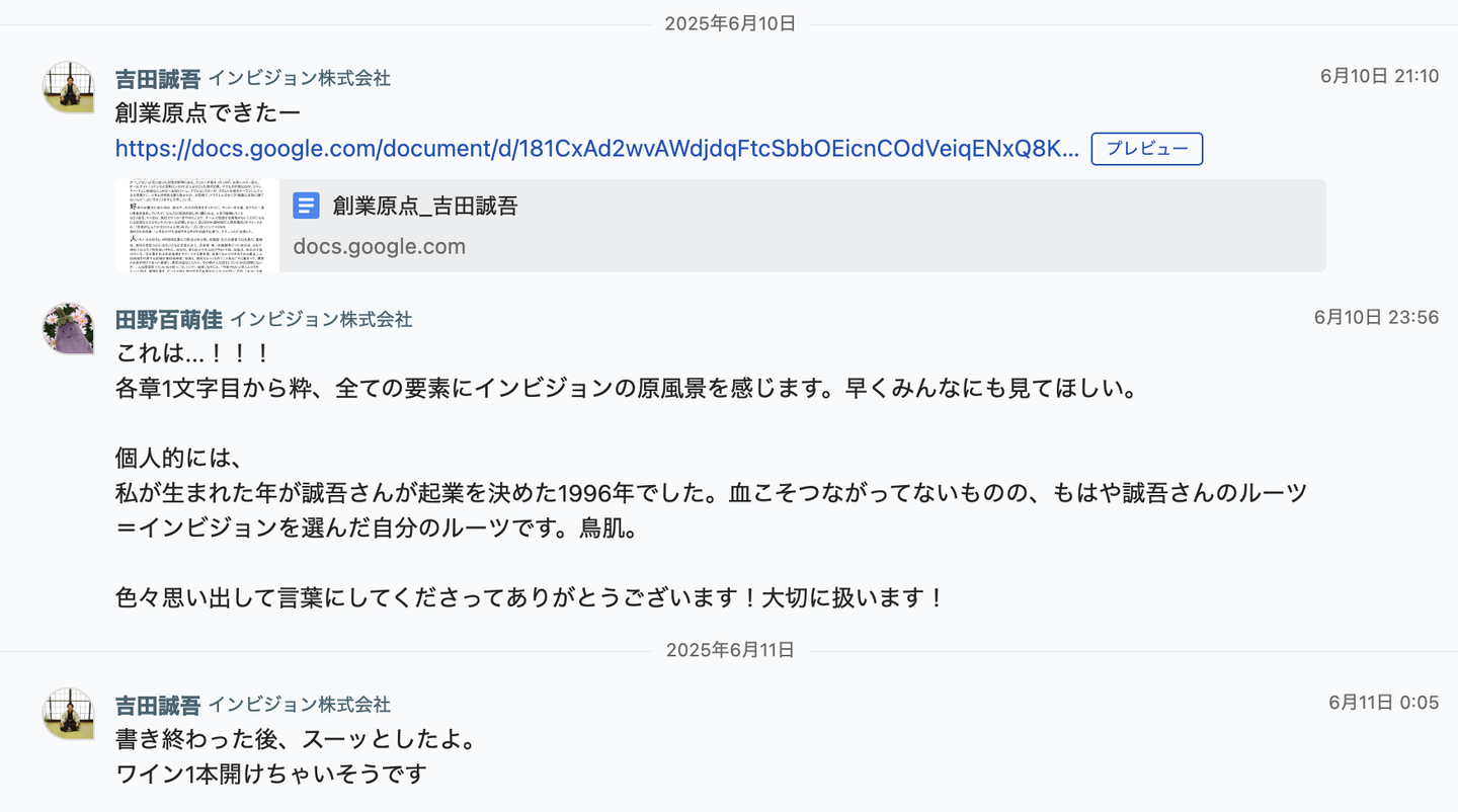 夜な夜な同じ広報チームのまこちゃんと原点回帰し、構成を切り直す。同じ気持ちで向き合う同期がいることが、心強くてたまらない。「いや〜、これはいいのができるね」と話しながら、全ページの輪郭が出来上がっていく。そこに一単語一文字心を込めた文章を載せる。誠吾さんも創業原点を内省し、したためてくれた。