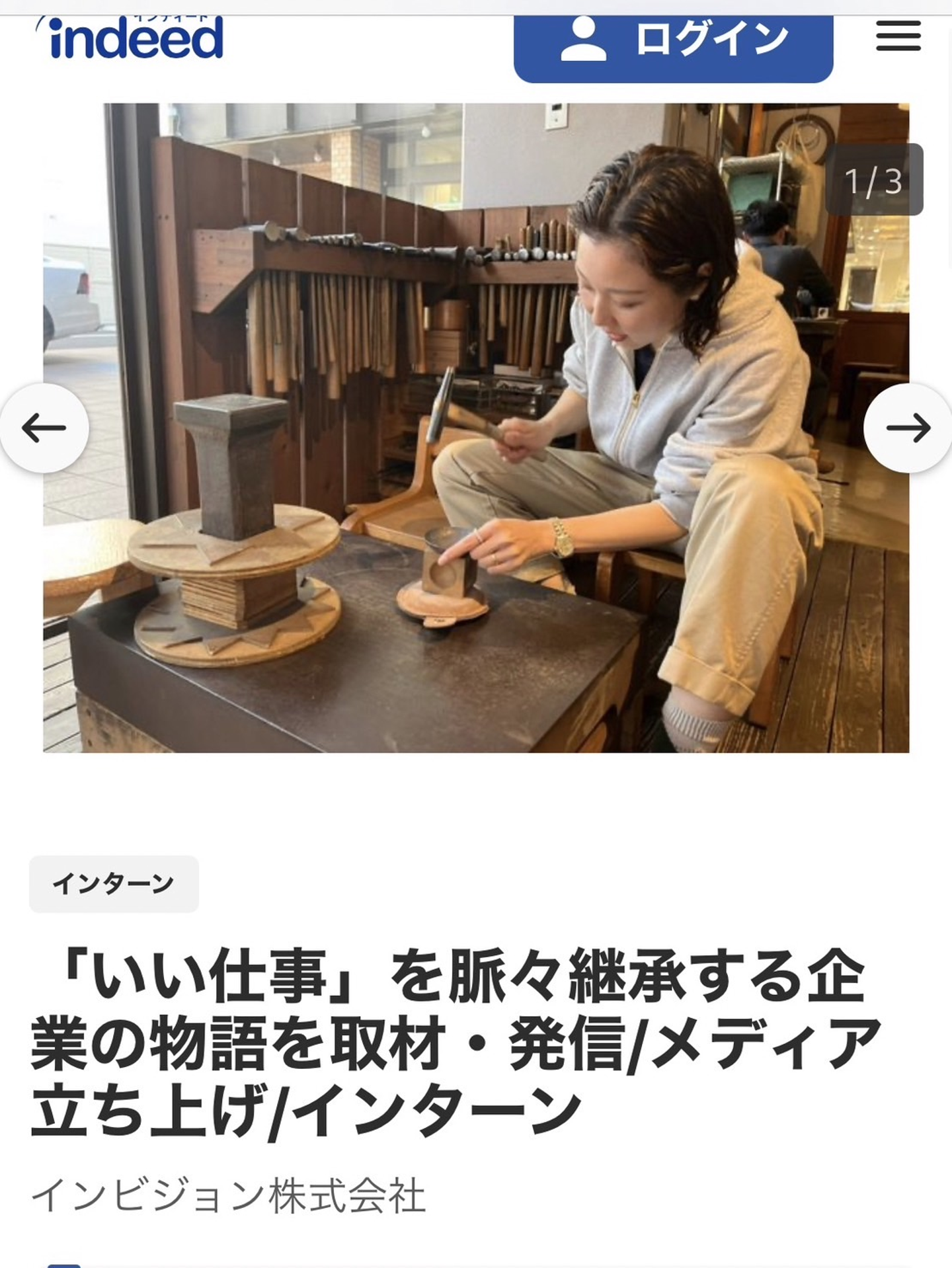 期待なんてものは一切消え失せながらスクロールしていたそんな時、「『いい仕事』を脈々継承する企業の物語を取材・発信/メディア立ち上げ/インターン」この言葉が私の目に飛び込んできた。それが、インビジョンの求人サイトだった。