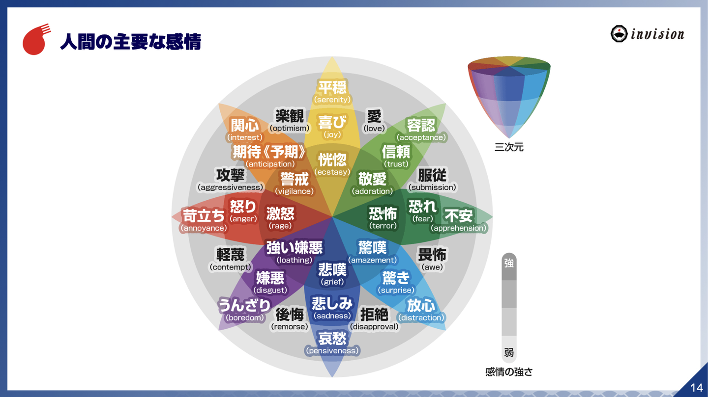 ことばにできない微妙な感情も含めると、人間には約2000種類もの感情があると言います。なんて退屈しないんでしょう。にもかかわらず、「今どんな気持ち?」って聞かれた時に、私たちが日常で想起できることばって、平均7個だけだという説も。ひょっとすると、仕事中に至ってはもっと少ないんじゃないかと思います。