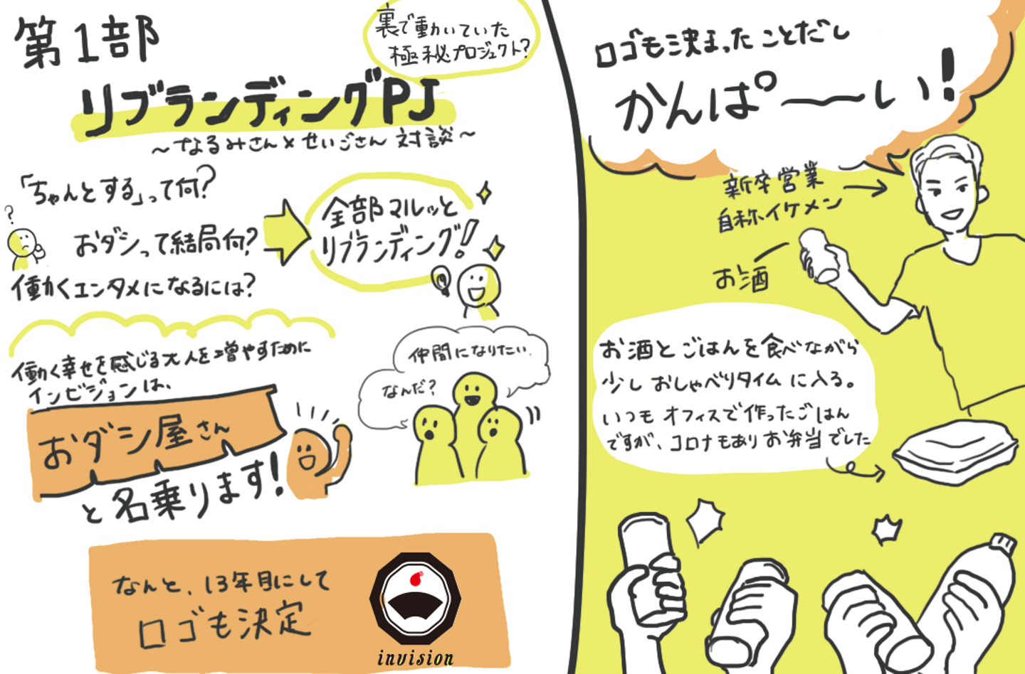 なぜ・どうやっておダシ屋になったのか等の詳細は、リブランディングのグラレコを見てください~~。