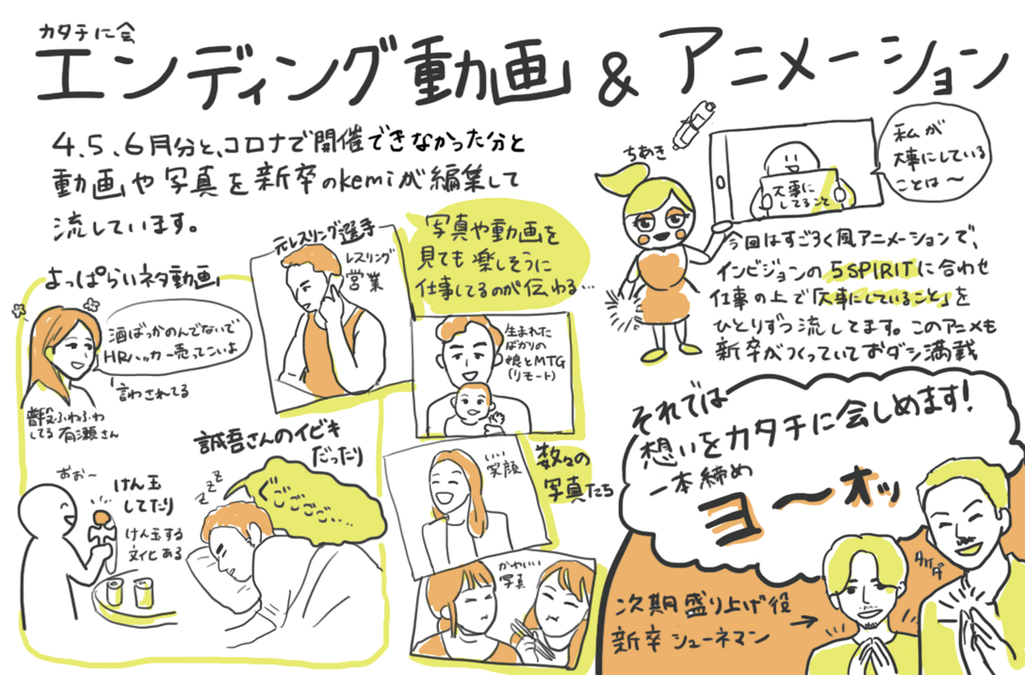 インビジョンでは3カ月に1回行われる「想いをカタチに会」という、表彰をしたり、3カ月間の思い出の動画を見ながら、ご飯とお酒を飲んでわちゃわちゃする会があるのです。