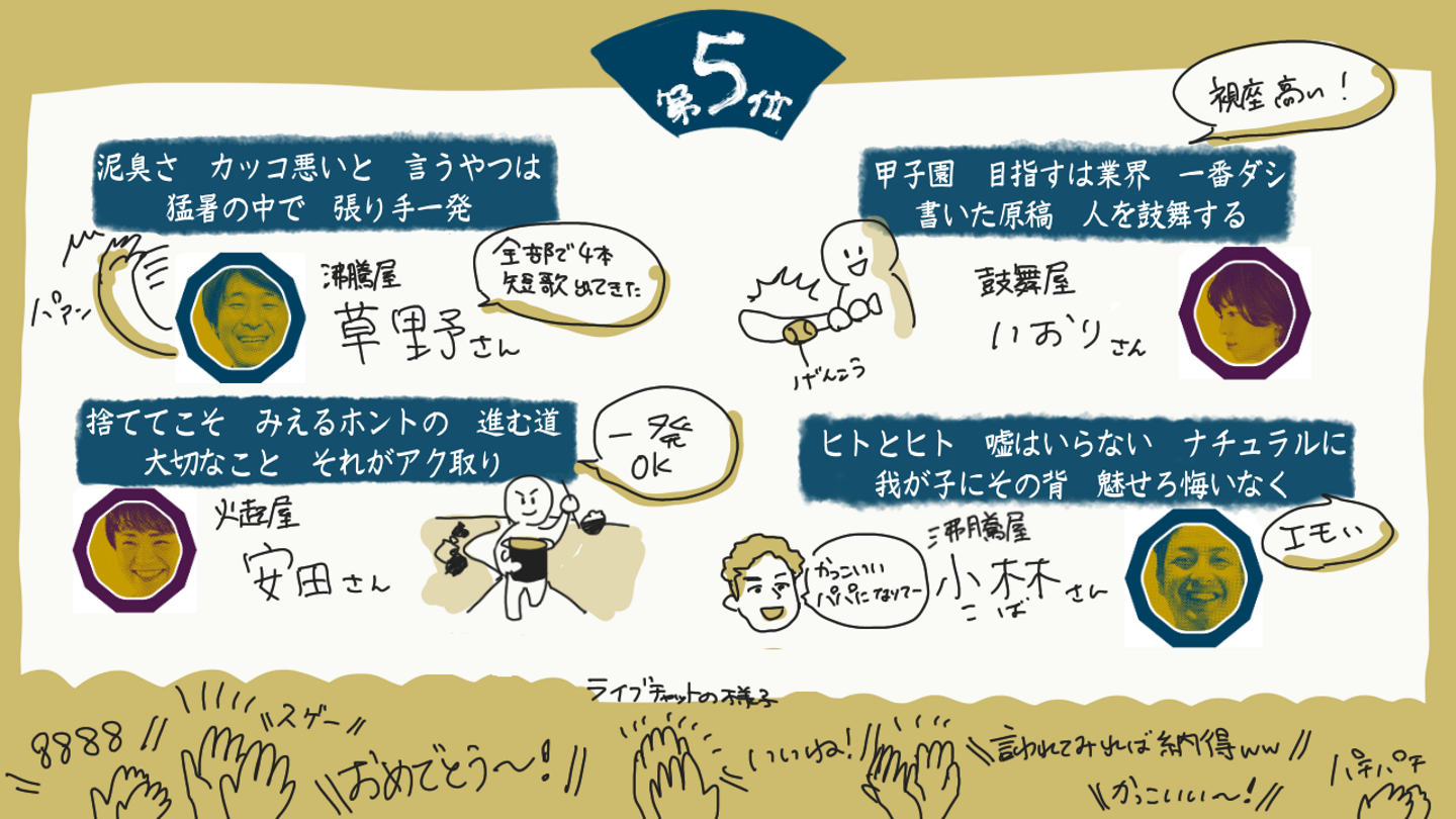 そしてこの短歌には特典があり、募集時の設定では「1位から3位まで特典がつく」という話だったのですが、5位まで特典がつくことになりました!ww