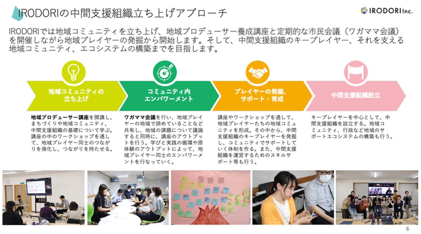 今回の経験から地域における中間支援組織の重要性を改めて認識することになり、IRODORIとして中間支援組織の立ち上げ支援を行う事業を推進していこうと思います。