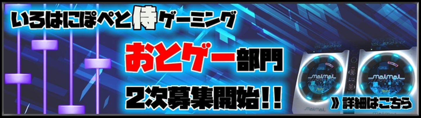 【令和元年05月02日】《 音ゲー部門:2次募集開始!! 》eSports実業団のいろはにぽぺと侍ゲーミング:音楽ゲーム部門所属選手の2次募集を開始しました!