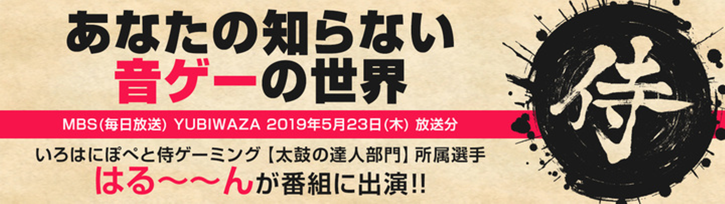 オタク無双カンパニー株式会社いろはにぽぺとのeSports実業団【いろはにぽぺと侍ゲーミング】の音楽ゲーム部門(太鼓の達人)において、MBS(毎日放送)のYUBIWAZA(出演;田村淳&矢口真里)「あなたの知らない音ゲーの世界」に弊社所属選手【はる~~ん】がテレビ番組に出演しました!!