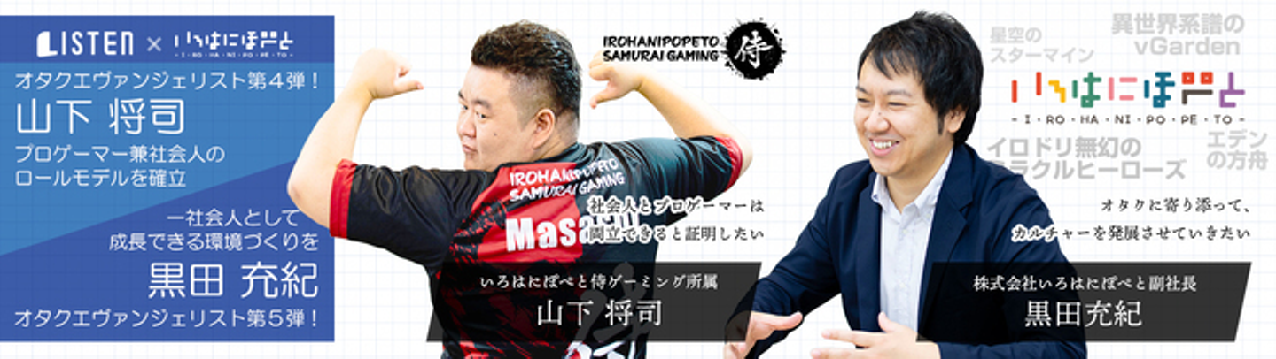 《いろはにまさし語る!?》いろはにぽぺとの『オタク業界のエヴァンジェリスト』13名が語る連載企画!今回は「いろはにぽぺと侍ゲーミング」PUBG部門所属 Masashi選手!そして、現在もエンジニア業界の頂点を走りづける副社長 黒田充紀を大特集!