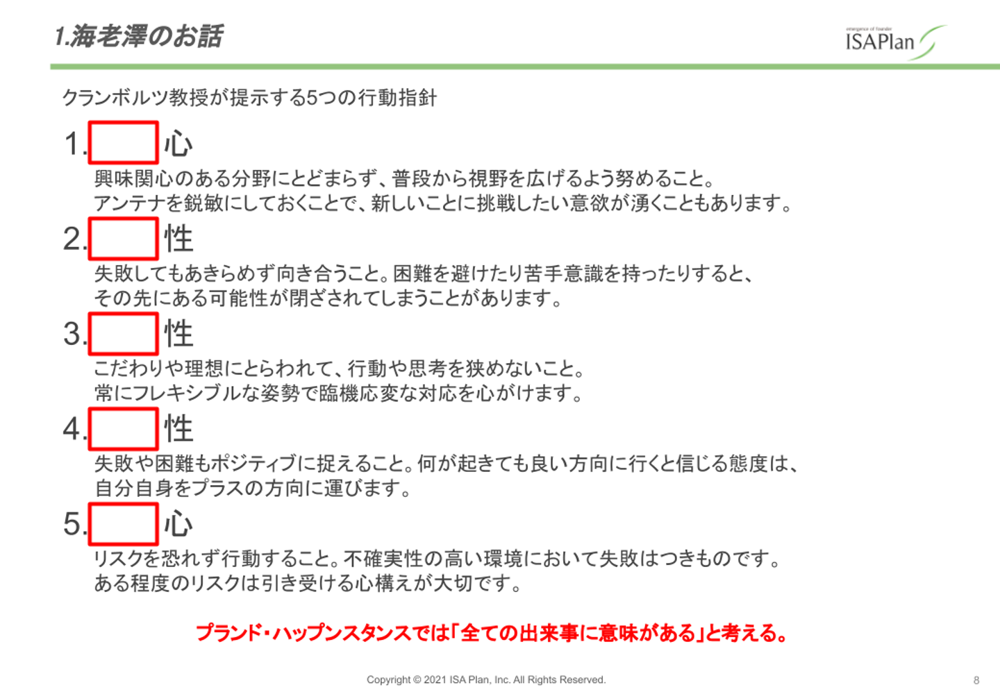 去年の5月くらい?に新卒入社のみんなの前で話をする機会をもらえたので、そこで僕は「計画的偶発性理論」の話をしました。