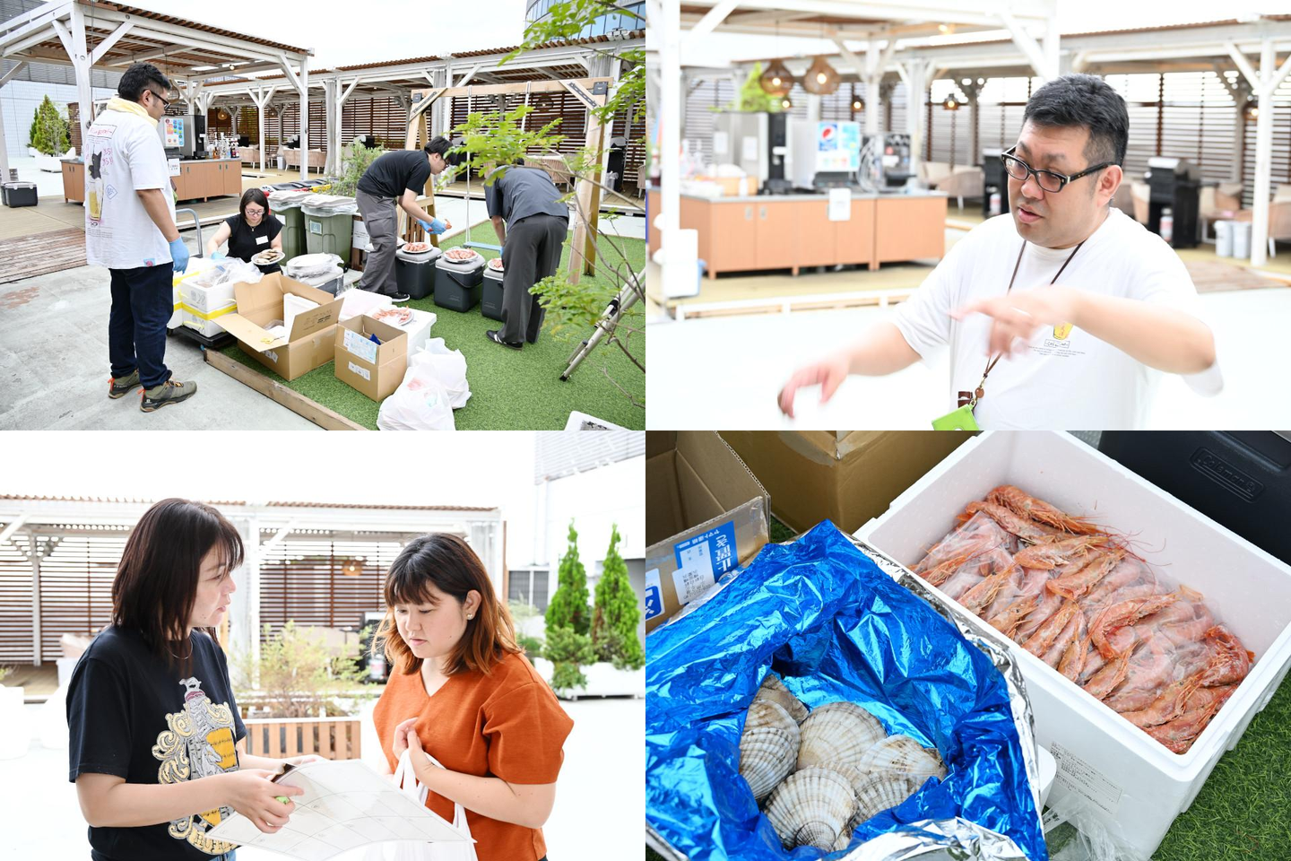 パーティ開始に向けて、現地で準備するスタッフの皆さん。今回はアイティアクセスが厳選した各種食材を持ち込みましたので、かなりの搬入量でした。