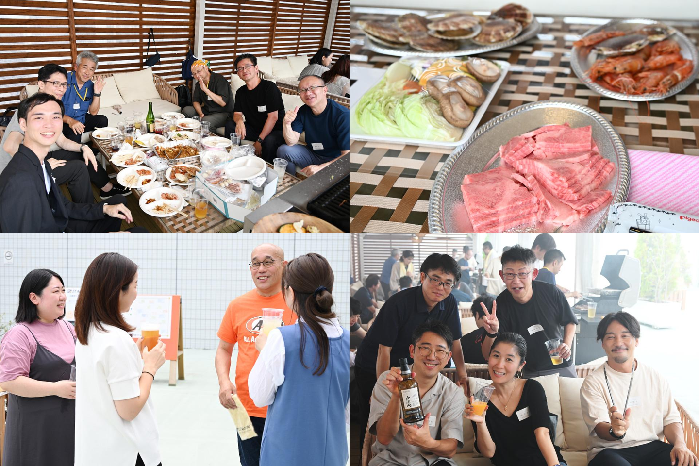 7~9人にグループ分けされた各テーブルでは、海老や帆立貝の海鮮に黒毛和牛を楽しみながら、皆さん笑顔でした。